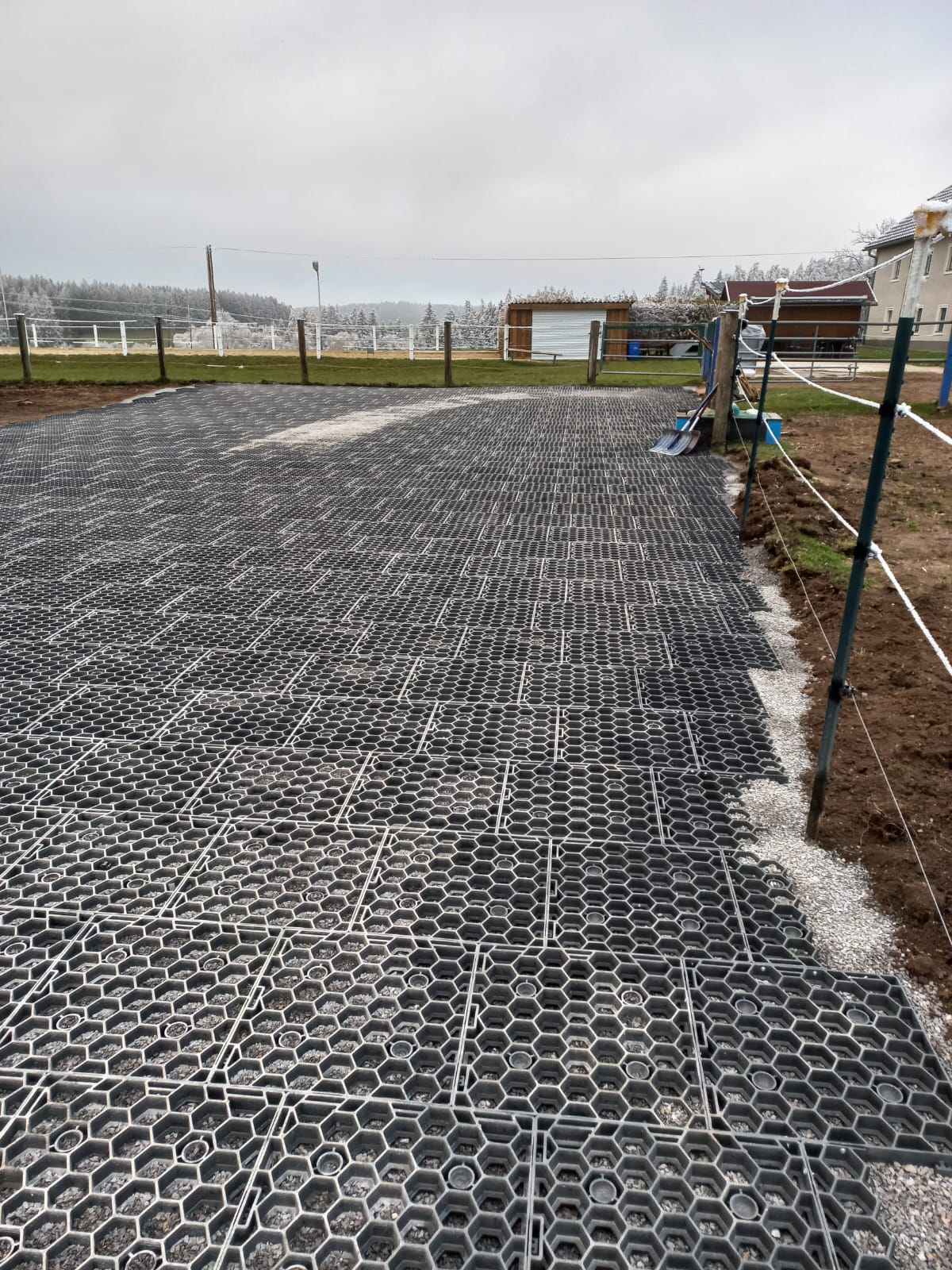 Vorher war unser Auslauf nur eine matschiger Auslauf, die kaum nutzbar war. Jetzt haben wir einen Reitplatz den wir bei jeden Wetter nutzen können, auch bei einem Starkregen lief das Wasser sehr gut ab.